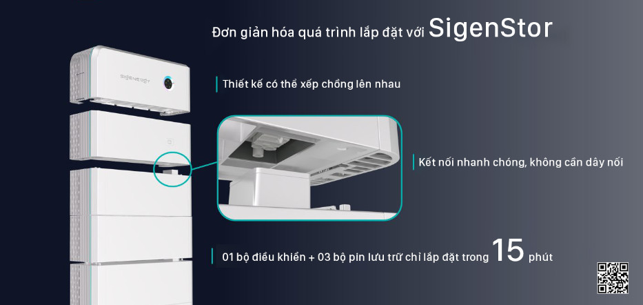 Quá trình vận hành hệ thống chỉ mất 5 phút. Bắt đầu bằng việc quét mã QR trên bất kỳ thiết bị SigenStor nào. Hệ thống sẽ tự động kết nối và phần mềm sẽ được cập nhật trong vòng 2 phút. Ứng dụng mySigen sau đó sẽ bắt đầu tự kiểm tra hệ thống để đảm bảo SigenStor được kết nối đúng cách và hệ thống sẵn sàng hoạt động.